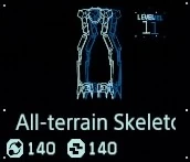 | All-terrain Skeleton (Lv. 2) | An improved version of the All-Terrain Skeleton (Lv. 1). While equipped, it will offer greater movement stability and increased cargo-carrying capacity, as long as there is battery power available. This model is also more energy-efficient, allowing it to be used for longer, and more compact--when not equipped, it will fold down into a medium-sized piece of cargo.