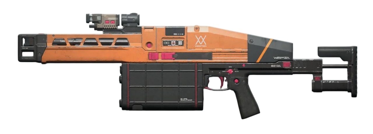 A lightweight (LW) variant of the machine gun. Although highly portable with a simple construction, it nevertheless retains the impressive full-auto firepower of the standard model.